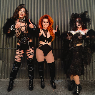 From top left – 1. Haus of Dioxide: Karmin Dioxide, Nikita Nessense, Eraya 51, Becky, Alessa Katherine – 2. Tom Catasrophe – 3. Miss Mia Tia, itsTealyxo, Luna D'Lux, Tom Catastrophe – 4. Nikita Nessence, Eraya 51, Sylvester Noir – 5. Robyn Dix – 6. Robyn Dix and Cadillac DeVille – 7. Cadillac Deville, Ghoulia, Tia Maria, Femme Brûlée, Tom Catastrophe – 8. Jaguar and itsTealyxo – 9. Femme Brûlée